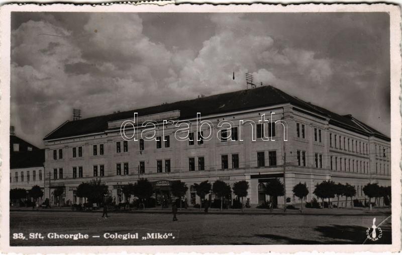 1938 Sepsiszentgyörgy, Sfantu Gheorghe; Mikó kollégium, Brassói általános takarékpénztár, Klein Fähndrich és Féder és Dr. Barabás és Sipos üzlete / colegiul / boarding school, savings bank, shops