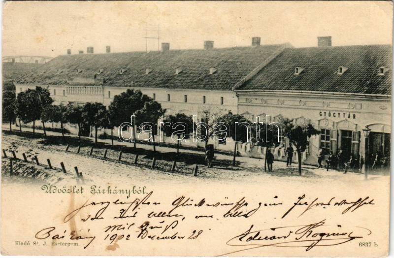 1902 Párkány, Stúrovo; Gyógyszertár, gyógytár. S. J. kiadása / pharmac... https://www.darabanth.com/de/427-Fernauktion/427.0/Ansichtskarten/Slowakei~1000006/1902-Parkany-Sturovo-Gyogyszertar-gyogytar-S-J-kiadasa-pharmacy-street-view-EK~II2732823