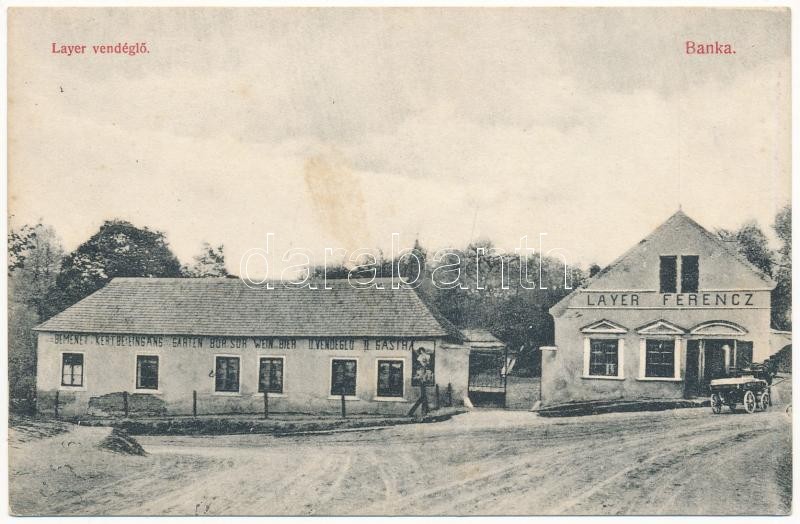 Bánka, Banka; Layer Ferenc vendéglője / inn, restaurant (fl) https://www.darabanth.com/de/427-Fernauktion/427.0/Ansichtskarten/Slowakei~1000006/Banka-Banka-Layer-Ferenc-vendegloje-inn-restaurant-fl~II2732847