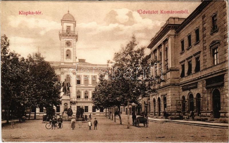 Beschreibung: Komárom, Komárno; Klapka tér, gyógyszertár, könyvnyomda, Ipovitz és Ivánfi üzlete. Spitzer Sándor kiadása / square, pharmacy, shops (kis szakadás / small tear)