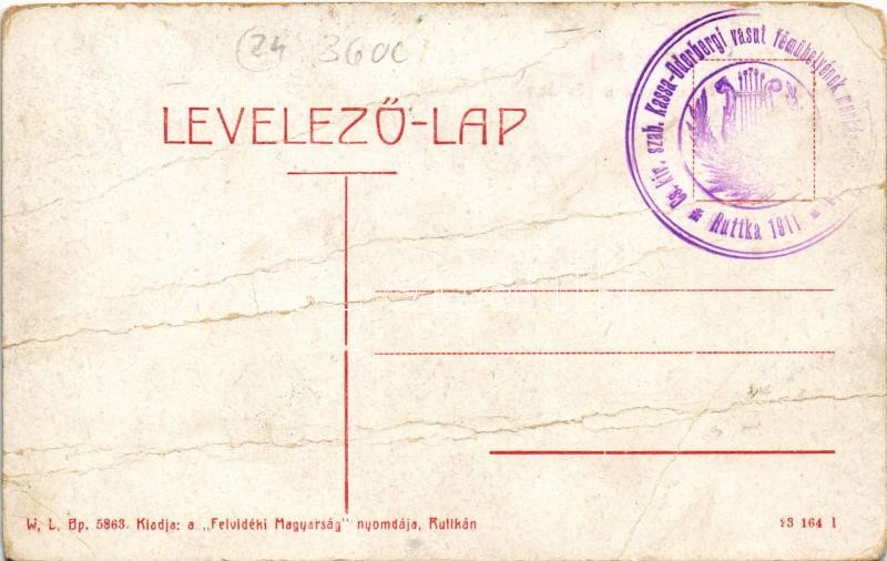 Beschreibung: Ruttka, Vrútky; Kassa-Oderbergi Vasút (KsOD, KOV) főműhelyének gépháza, vasútállomás. W.L. Bp. 5863. Felvidéki Magyarság kiadása / machine house of the Kosice-Bohumín Railway station, main workshop (fa)
