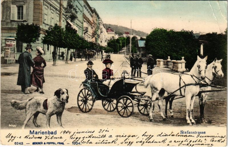 1904 Marianske Lazne, Marienbad; Stefanstrasse / street. Montage with ... https://www.darabanth.com/de/427-Fernauktion/427.0/Ansichtskarten/Tschechische-Republik~1000066/1904-Marianske-Lazne-Marienbad-Stefanstrasse-street-Montage-with-horse-chariot-and-dog-Lederer~II2733966
