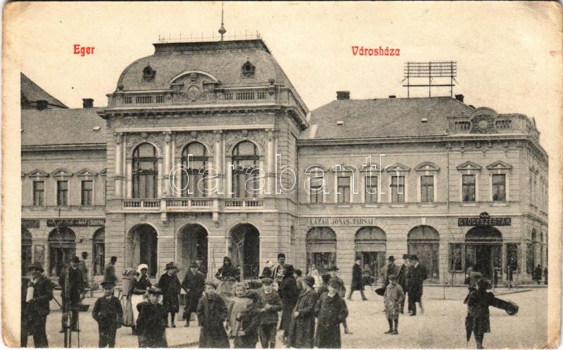 Eger, Városháza, gyógyszertár, Lázár Jónás és Társai üzlete, piac (tűn... https://www.darabanth.com/de/427-Fernauktion/427.0/Ansichtskarten/Ungarn~1000004/Eger-Varoshaza-gyogyszertar-Lazar-Jonas-es-Tarsai-uzlete-piac-tunyomok-pin-marks~II2726310