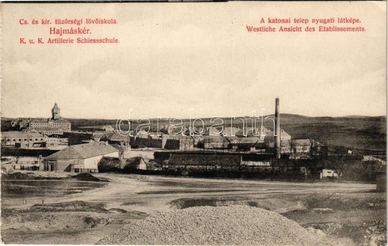 Hajmáskér, Cs. és kir. tüzérségi lövőiskola, a katonai telep nyugati l... https://www.darabanth.com/de/427-Fernauktion/427.0/Ansichtskarten/Ungarn~1000004/Hajmasker-Cs-es-kir-tuzersegi-lovoiskola-a-katonai-telep-nyugati-latkepe~II2731881