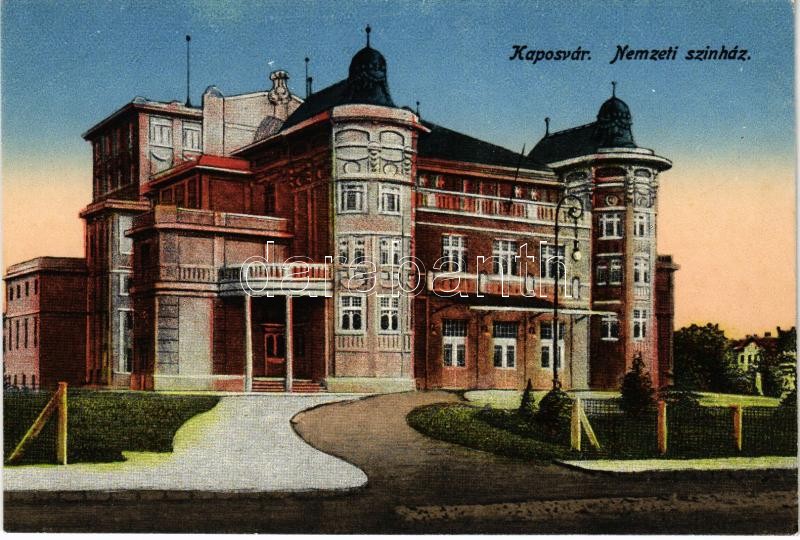 Kaposvár, Nemzeti színház. Vasúti levelezőlapárusítás 45/1. https://www.darabanth.com/de/427-Fernauktion/427.0/Ansichtskarten/Ungarn~1000004/Kaposvar-Nemzeti-szinhaz-Vasuti-levelezolaparusitas-451~II2723985