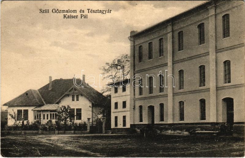 Szil (Rábaköz), Kaiser Pál Gőzmalom és tésztagyár https://www.darabanth.com/de/427-Fernauktion/427.0/Ansichtskarten/Ungarn~1000004/Szil-Rabakoz-Kaiser-Pal-Gozmalom-es-tesztagyar~II2733011