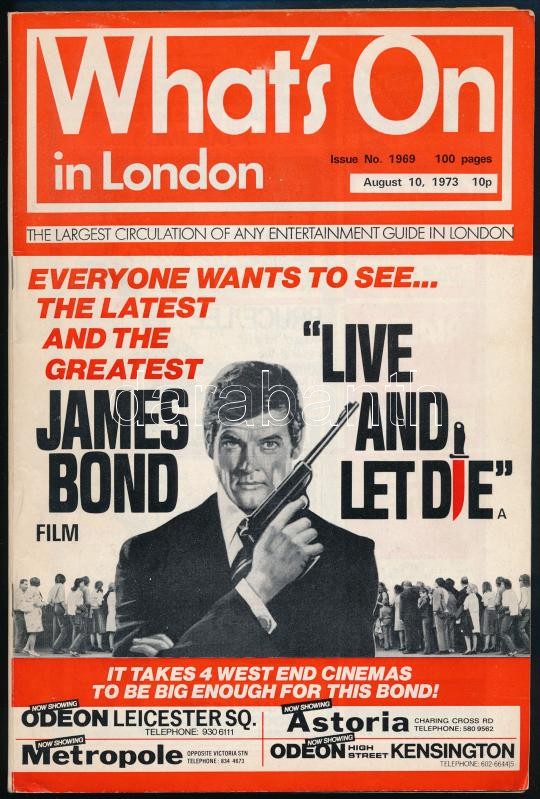Leslie Charteris: Enter the Saint. A Saint Novel. New York,én.,Fiction Publishing Co. Angol nyelven. A borítón Roger Moore-ral. Kiadói papírkötés. + 1973 What's on in London. August 10, 1973. A borítón Roger Moore-ral, 'Live and Let Die.' James Bond film felirattal.