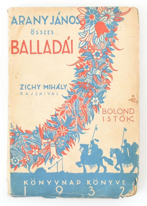 Arany János összes balladái, Zichy Mihály rajzaival. Bolond Istók. Beöthy Zsolt és Vinovich Géza tanulmányai. 1932, Magyar Könyvkiadók s Könyvkereskedők Országos Egyesülete. Kiadói papírkötés, ajándékozási sorokkal, gerincnél szakadt, kopottas állapotban.