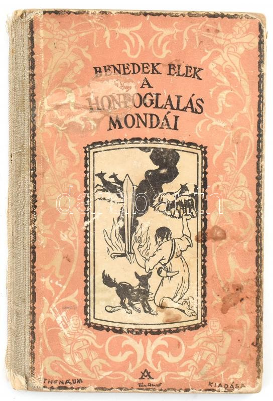 Benedek Elek: A honfoglalás mondái. Széchy Gyula rajzaival. Az Athenaeum Mese-Könyvtára. Bp., én,Athenaeum. Harmadik kiadás. Szövegközti illusztrációkkal. A borító Fáy Dezső munkája. Kiadói kopott, kissé foltos félvászon-kötés, volt könyvtári példány.