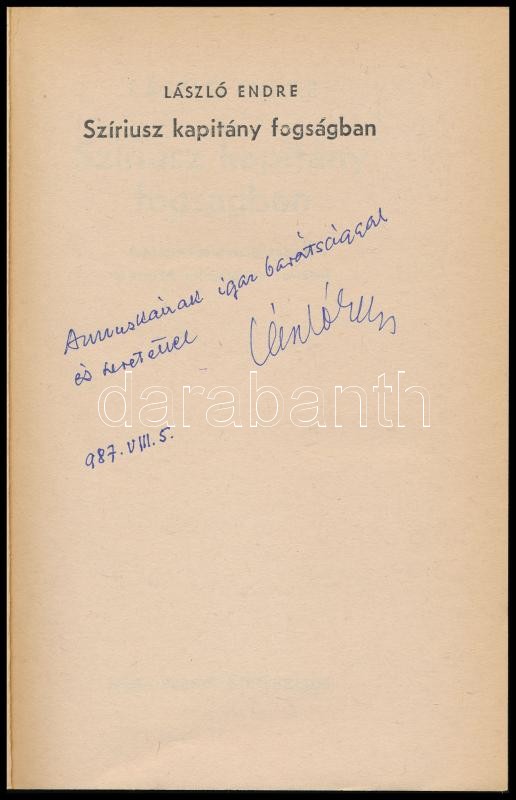 László Endre: Szíriusz kapitány fogságban. A szerző, László (1900-1987) író által Major Anna (1932-2021) dramaturg,a Szabó - család dramaturgja részére DEDIKÁLT példány. Fantasztikus ifjúsági regény. Eszik Alajos rajzaival. Bp., 1987., Móra. Kiadói papírkötés