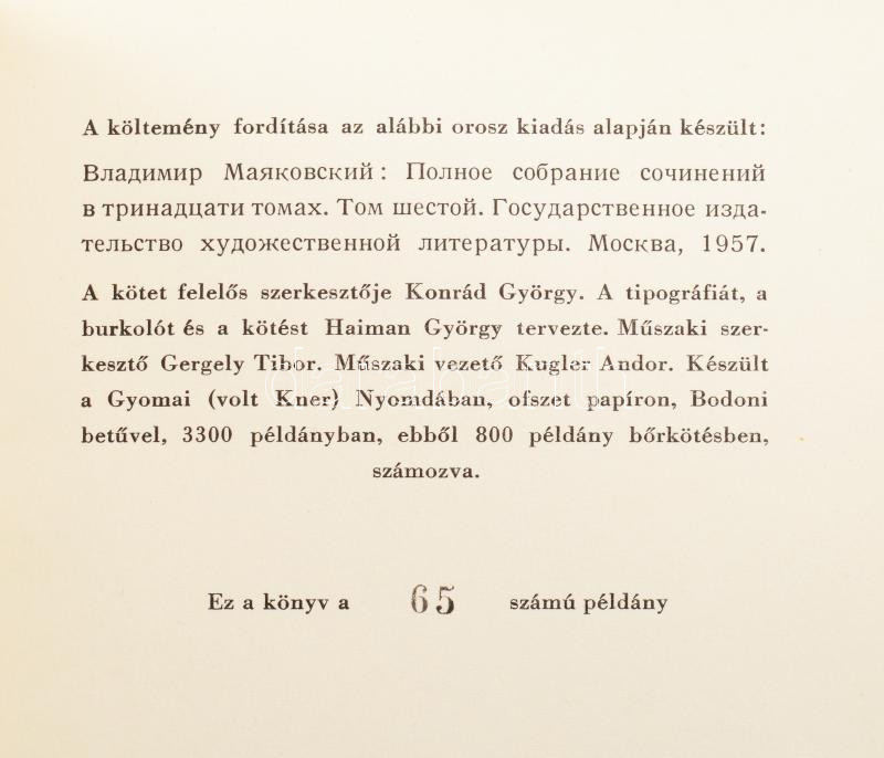Majakovszkij, Vlagyimir Vlagyimirovics: Lenin. Ford.: Radó György. Az eredeti linóleummetszeteket Raszler Károly készítette. Bp, 1962, Magyar Helikon. Kiadói egészbőr-kötés, jó állapotban. Számozott (65./800) példány. Csak 800 példány bőrkötéses!