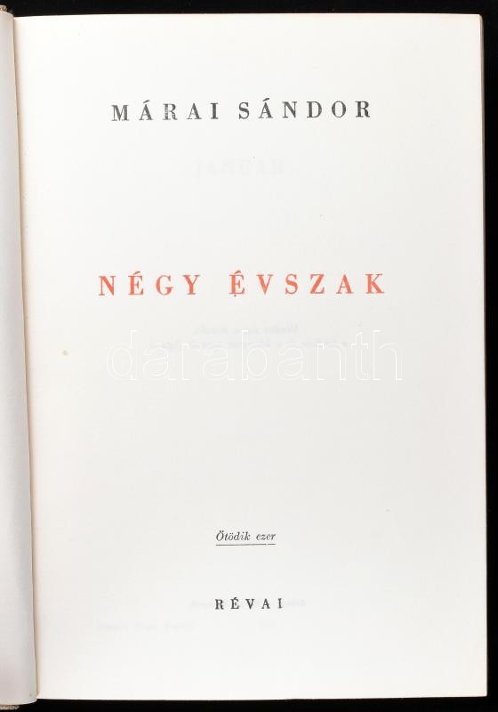 Márai Sándor: Négy évszak. Bp., Révai. Első kiadás! Kiadói egészvászon... https://www.darabanth.com/de/427-Fernauktion/427.0/Bucher/Bucher-Andere-kuriositaten~1500026/Marai-Sandor-Negy-evszak-Bp-Revai-Elso-kiadas-Kiadoi-egeszvaszon-kotes-jo-allap~II2705209