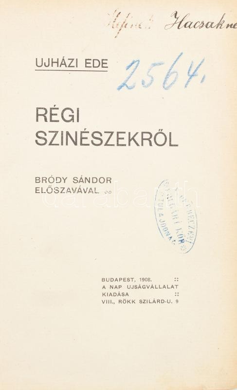 Ujházi Ede: Régi színészekről. H.n., é.n. Kiadói félbőr kötés, ajándék... https://www.darabanth.com/de/427-Fernauktion/427.0/Bucher/Bucher-Andere-kuriositaten~1500026/Ujhazi-Ede-Regi-szineszekrol-Hn-en-Kiadoi-felbor-kotes-ajandekozasi-bejegyzes~II2731909