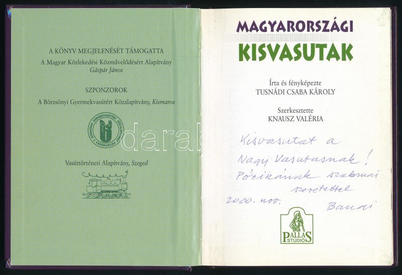 Tusnádi Csaba Károly: Magyarországi kisvasutak. Szerk.: Knausz Valéria... https://www.darabanth.com/de/427-Fernauktion/427.0/Bucher/Bucher-Technik~1500019/Tusnadi-Csaba-Karoly-Magyarorszagi-kisvasutak-Szerk-Knausz-Valeria-Bp-2000-Kossuth-Nyomda~II2729411