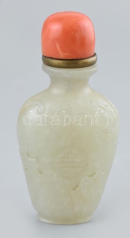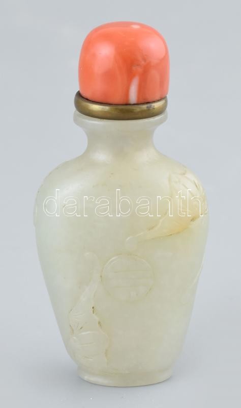 Kínai faragott jáde tubákos szelence, fém nyeles korall kupakkal, m: 7... https://www.darabanth.com/de/427-Fernauktion/427.0/Kunst-Dokumente-andere-Sammelgebiete/Antik~500009/Kinai-faragott-jade-tubakos-szelence-fem-nyeles-korall-kupakkal-m-7-5-cm~II2735498