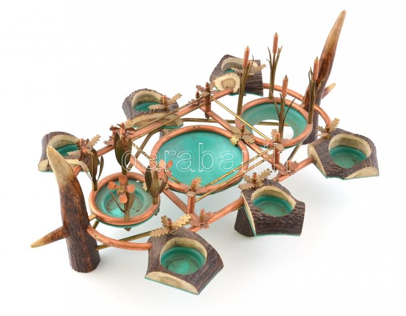 Vadász italtartó, kézzel készített, agancs, réz, műanyag alj. 46x30 cm https://www.darabanth.com/de/427-Fernauktion/427.0/Kunst-Dokumente-andere-Sammelgebiete/Antik~500009/Vadasz-italtarto-kezzel-keszitett-agancs-rez-muanyag-alj-46x30-cm~II2731487