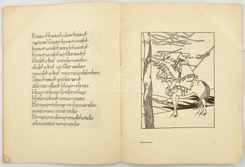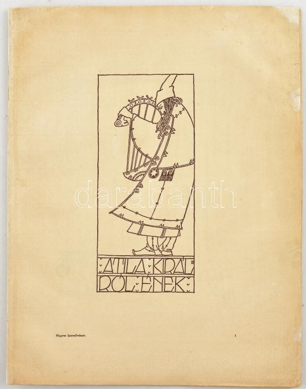 1909 Kós Károly: Attila királyról ének. Bp., 1909. Athenaeum. 22p. A mű eredetileg a Magyar Iparművészet c. lap mellékleteként jelent meg.22p. Lapszámozáson belül Kós Károly egészoldalas fametszeteivel 31x24 cm Restaurálás nyomaival