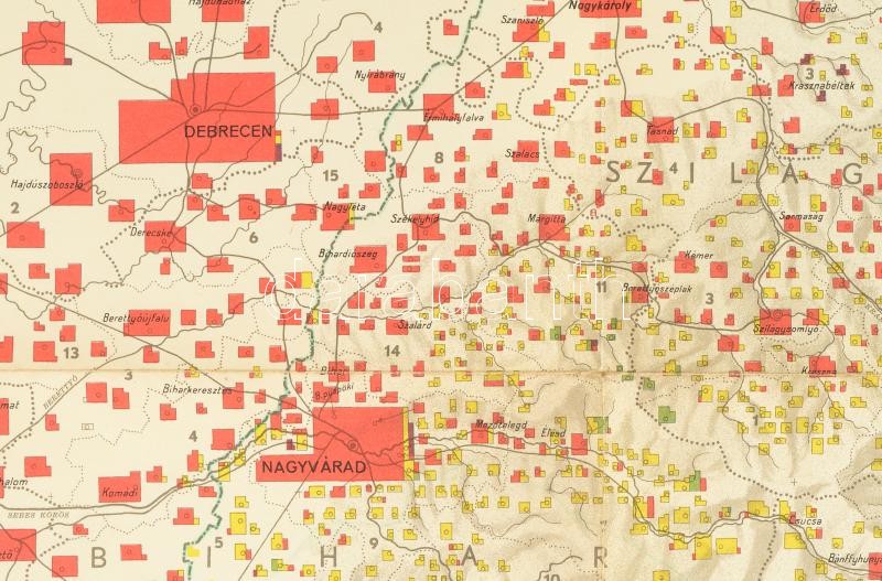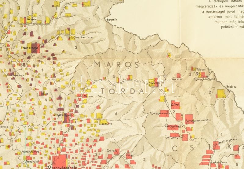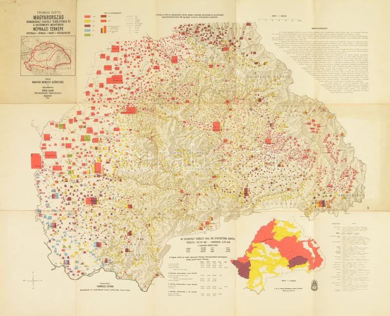 1940 Trianon előtti Magyarország Romániához csatolt területének és a határmenti megyéknek néprajzi térképe, kiadja: Magyar Nemzeti Szövetség. jó állapotban. 63×73 cm
