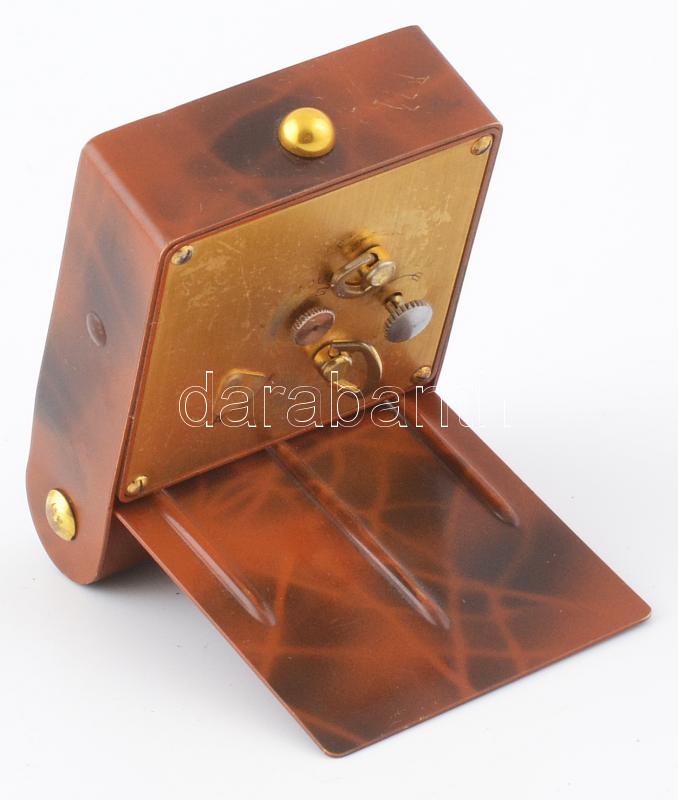 Beschreibung: Jaeger utazóóra, mechanikus, működik, jó állapotban. 6x9 cm