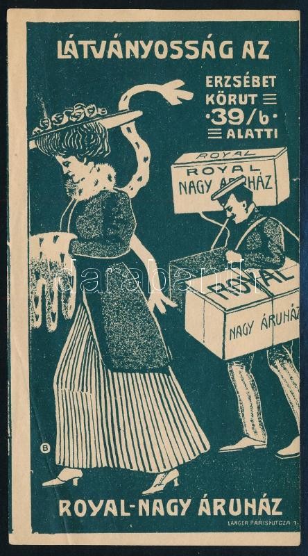 Royal Nagy Áruház számolócédula https://www.darabanth.com/de/427-Fernauktion/427.0/Kunst-Dokumente-andere-Sammelgebiete/Werbungen~500023/Royal-Nagy-Aruhaz-szamolocedula~II2735596