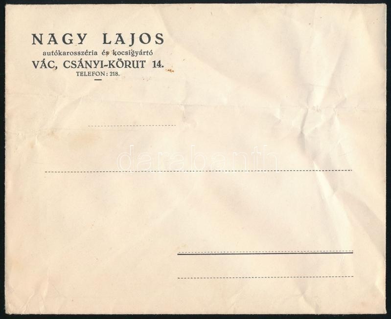 cca 1935 Nagy Lajos autókarosszéria és kocsigyártó fejléces borítékja https://www.darabanth.com/de/427-Fernauktion/427.0/Kunst-Dokumente-andere-Sammelgebiete/Werbungen~500023/cca-1935-Nagy-Lajos-autokarosszeria-es-kocsigyarto-fejleces-boritekja~II2732066