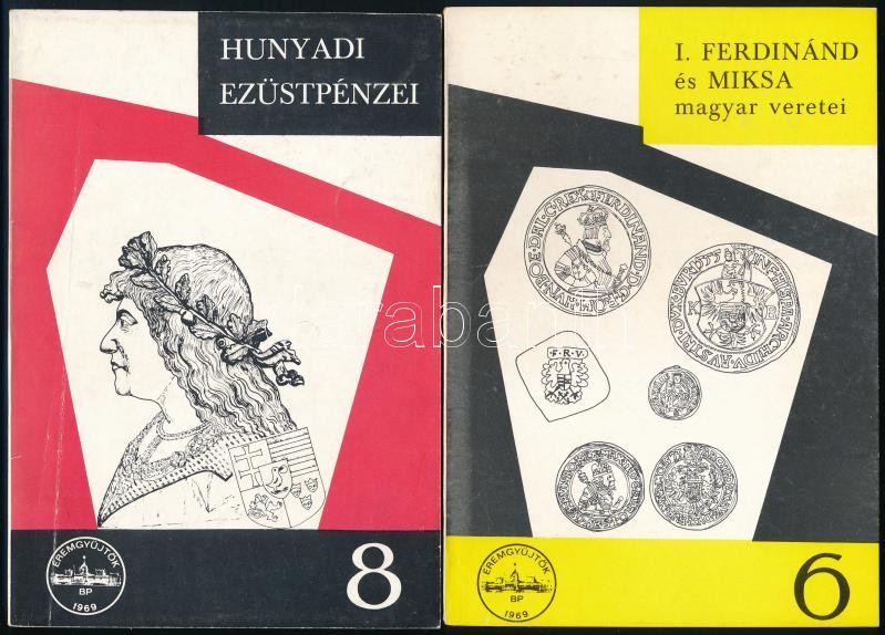 Pohl Artúr: Hunyadi Mátyás birodalmának ezüstpénzei 1458-1490. Magyar Éremgyűjtők Egyesülete, Budapest, 1972. + Zaláni Béla: A Habsburgok magyar veretei I. - I. Ferdinánd és Miksa magyar veretei. Magyar Éremgyűjtők Egyesülete, Budapest, 1972. Mindkét kötet használt, jó állapotban.