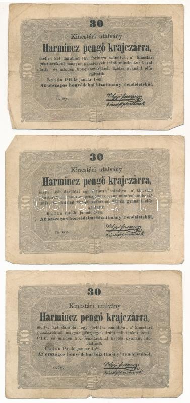 Beschreibung: 1849. 30kr "Kossuth bankó" (3x) T:III,III- Adamo G103