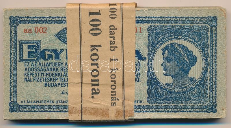 1920. 1K (105x) javított kötegelővel, részletekben sorszámkövetők: &qu... https://www.darabanth.com/de/427-Fernauktion/427.0/Numismatik/Ungarische-Banknoten~2000007/1920-1K-105x-javitott-kotegelovel-reszletekben-sorszamkovetok-aa-002-417301-aa-002-41~II2732007