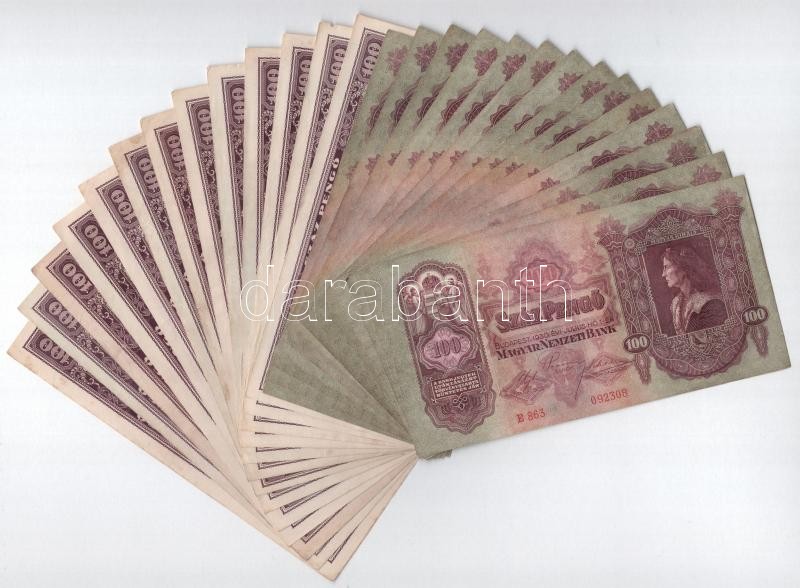 Adamo P17, P18 https://www.darabanth.com/de/427-Fernauktion/427.0/Numismatik/Ungarische-Banknoten~2000007/1930-100P-14x-plus-1945-100P-13x-TIII-III--Adamo-P17-P18~II2730583