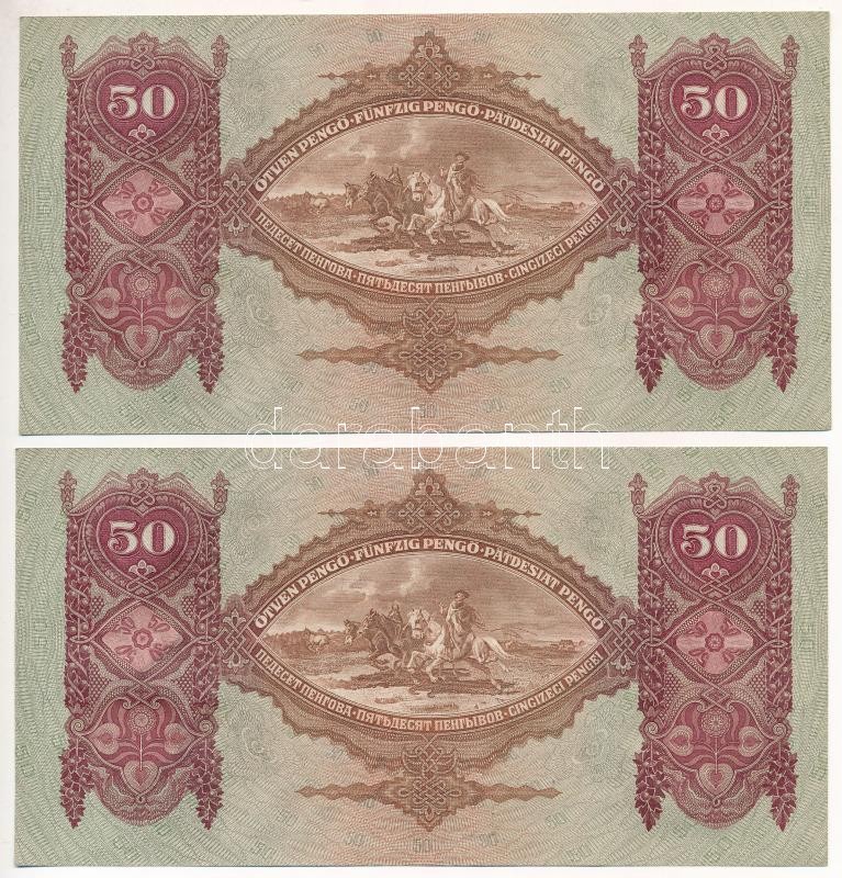 Beschreibung: 1932. 50P (2x) sorszámkövetők "D 256 052816 - D 256 052817", nyomdai papírráncokkal T:I-