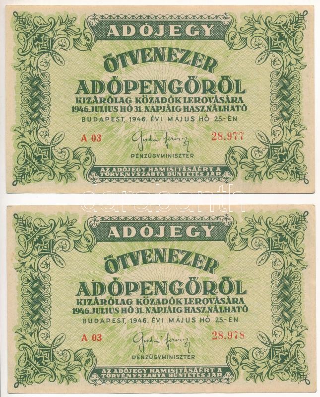 Beschreibung: 1946. 50.000AP (2x) "A03 28.977-28.978" sorszámkövetők T:III