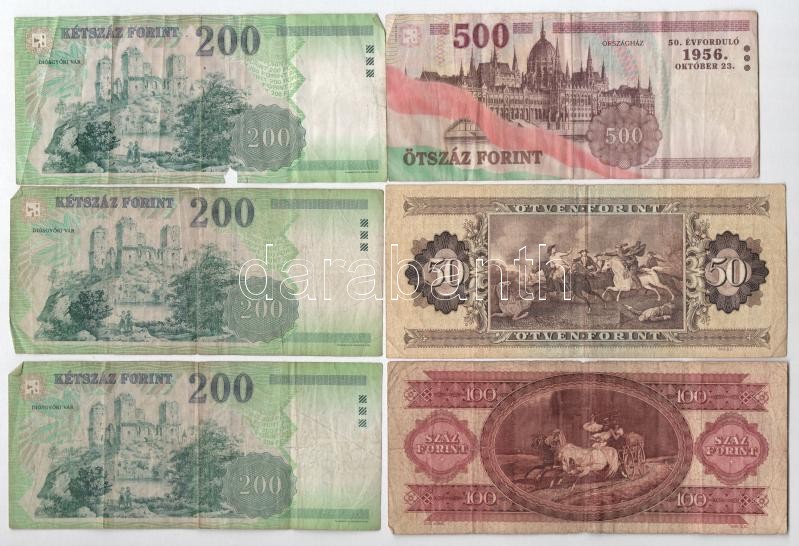 Beschreibung: 1983. 50Ft + 1992. 100Ft + 1998. 200Ft "FH" (anyaghiány) + 2004. 200Ft "FB" + 2005. 200Ft "FB" + 2006. 500Ft "EB" "A forradalom 50. évfordulója 1956. október 23." T:III,III-