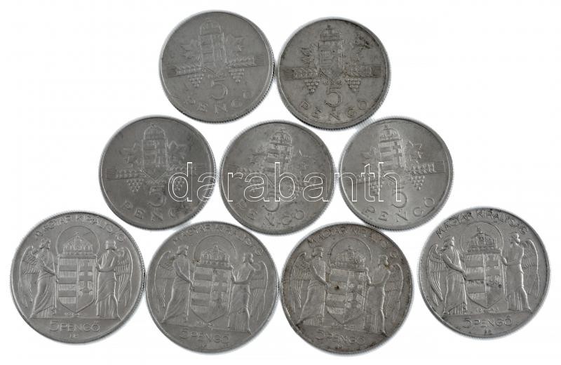 Beschreibung: 1943. 5P Al "Horthy Miklós születésének 75. évfordulója" (4db) + 1945. 5P Al "Parlament" (5db) T:2-3