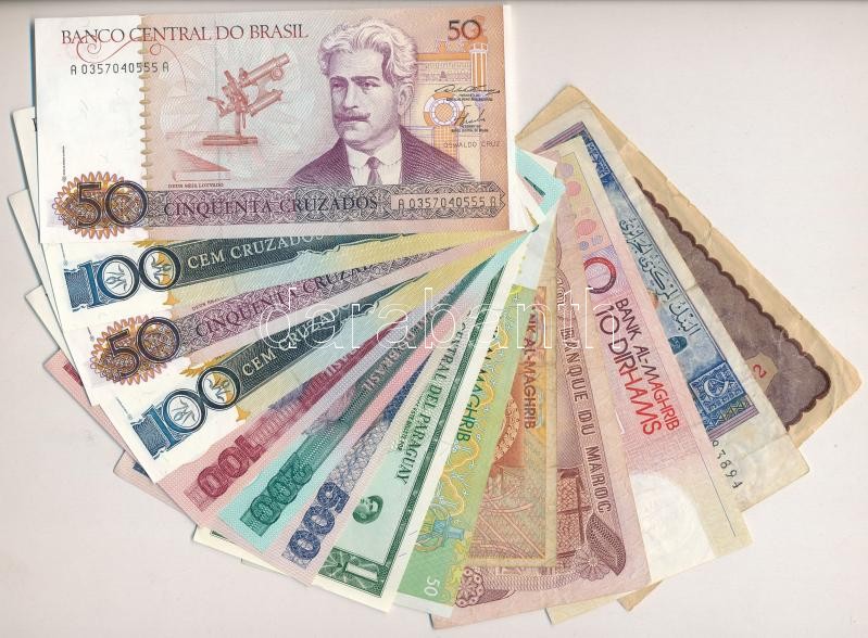 14db vegyes külföldi bankjegy, közte Lengyelország 1919. 1000M, Paraguay, Brazília, Marokkó T:I--III- 14pcs of diff banknotes from diff countries, with Poland 1919. 1000 Marek, Paraguay, Brazil, Marocco C:AU-VG