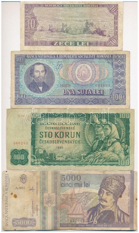 8db-os vegyes külföldi bankjegy tétel, közte Csehszlovákia, Románia, Szlovákia T:III,III-