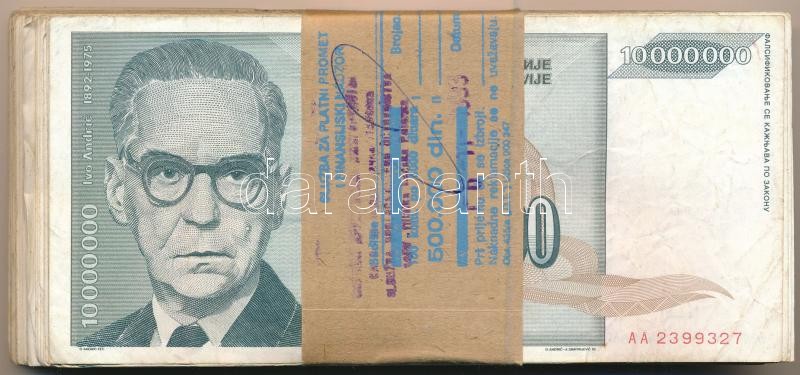 Jugoszlávia 1993. 10.000.000D (100x) eredeti, nem saját banki kötegelővel T:III Yugoslavia 1993. 10.000.000 Dinara (100x) in original, not the own wrapper C:F Krause P#122