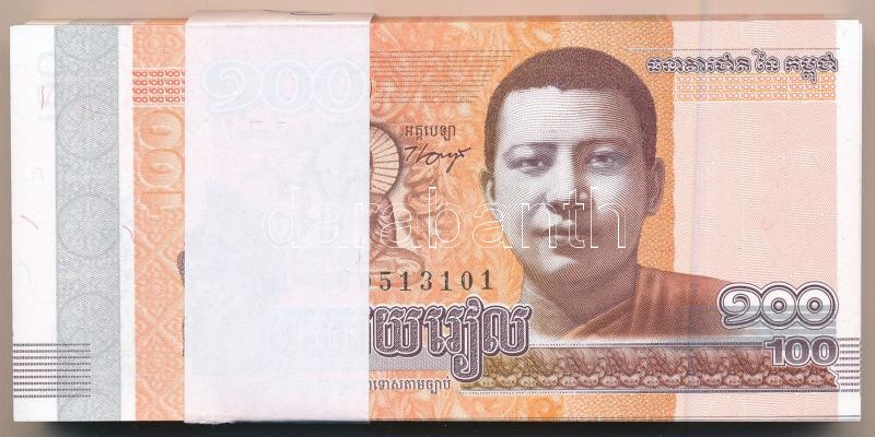 Beschreibung: Kambodzsa 2014. 100R (100x) kötegelővel, sorszámkövetők T:I,I- Cambodia 2014. 100 Riels (100x) with wrapper, consecutive serials C:UNC,AU Krause P#65