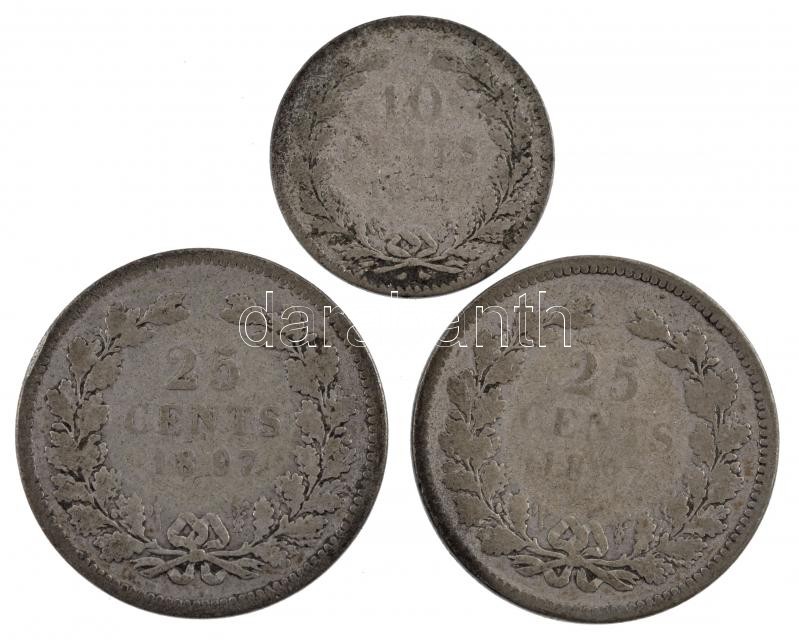 Netherlands 1897. 10 Cents Ag "Wilhelmina" + 25 Cents Ag "Wilhelmina" (2x) C:F