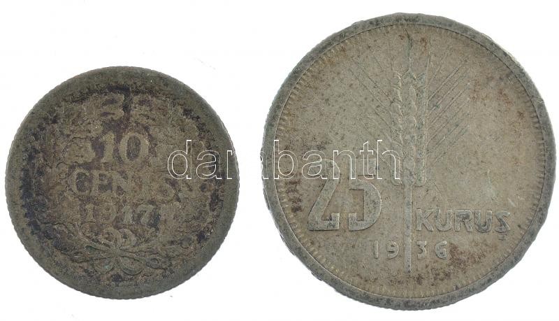 Hollandia 1917. 10c Ag + Törökország 1936. 25k Ag "Kemal Atatürk&... https://www.darabanth.com/de/427-Fernauktion/427.0/Numismatik/Weltweit-Munzen~2000015/Hollandia-1917-10c-Ag-plus-Torokorszag-1936-25k-Ag-Kemal-Ataturk-T3-2--Netherlands-1917-10-C~II2735552