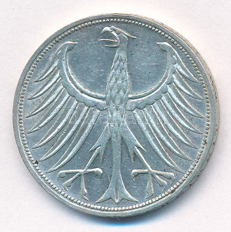 GFR 1967G 5 Mark Ag C:XF,VF pa... https://www.darabanth.com/de/427-Fernauktion/427.0/Numismatik/Weltweit-Munzen~2000015/NSZK-1967G-5M-Ag-T2-2-patina-kis-ph-GFR-1967G-5-Mark-Ag-CXF-VF-patina-small-edge-error-Krause~II2726911