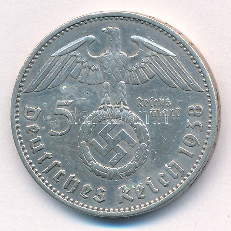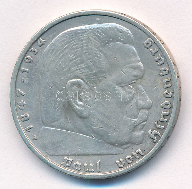 Német Harmadik Birodalom 1938A 5M Ag "Hindenburg" T:2 patina... https://www.darabanth.com/de/427-Fernauktion/427.0/Numismatik/Weltweit-Munzen~2000015/Nemet-Harmadik-Birodalom-1938A-5M-Ag-Hindenburg-T2-patina-German-Third-Reich-1938A-5-Mark-Ag-Hi~II2726766