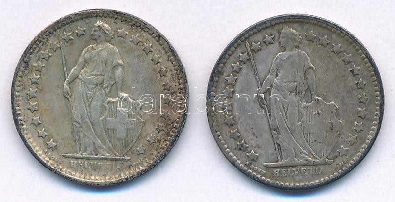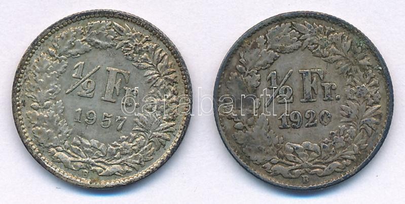 Svájc 1920. 1/2Fr Ag + 1957. 1/2Fr Ag T:2,2- patina Switzerland 1920. 1/2 Franc Ag + 1957. 1/2 Franc Ag C:XF,VF patina Krause KM#23