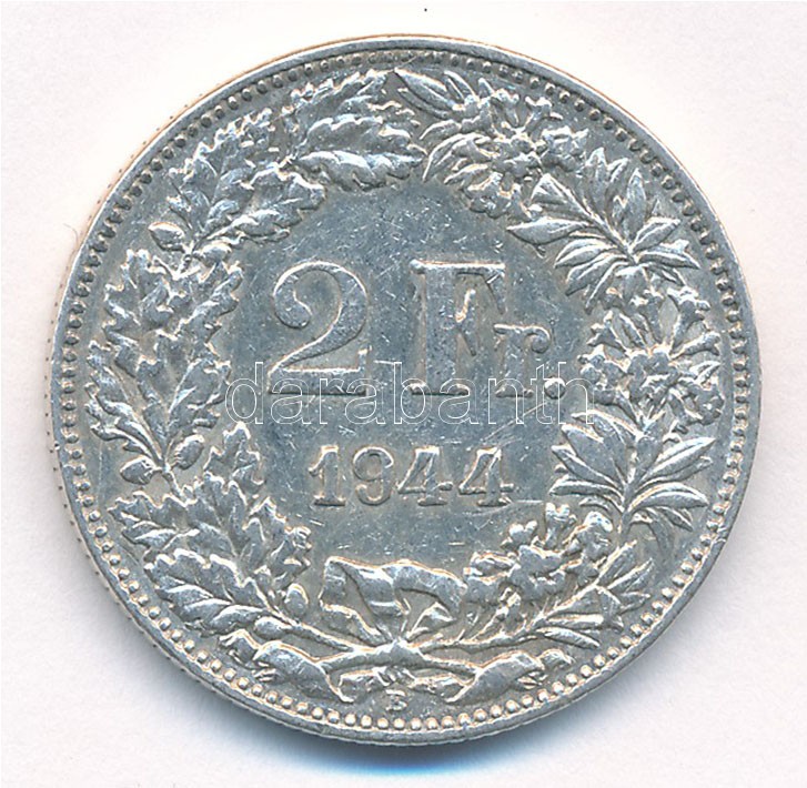 Beschreibung: Svájc 1944. 2Fr Ag T:2