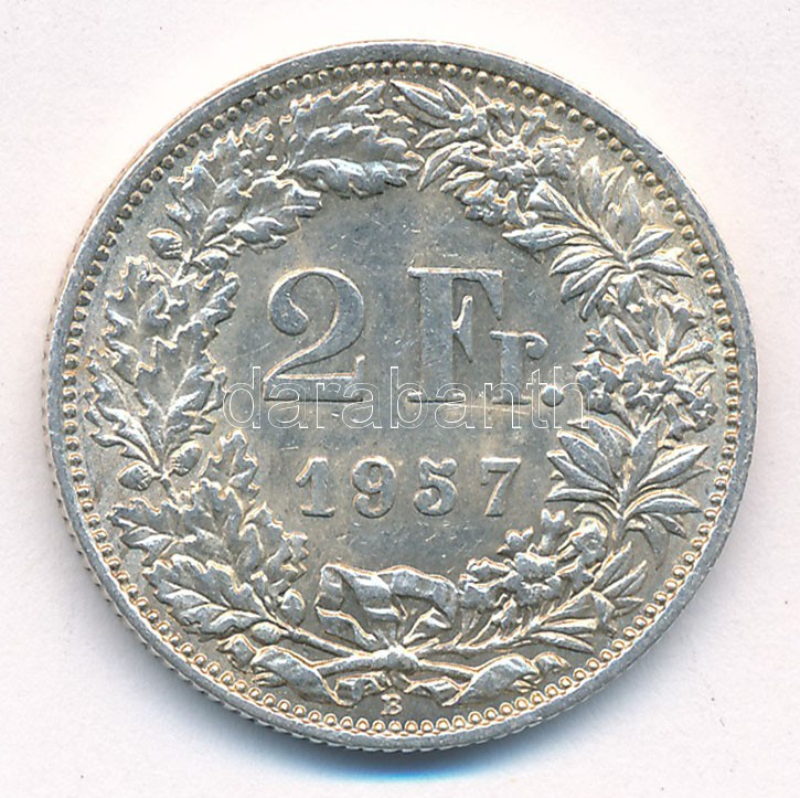 Switzerland 1957. 2 Francs Ag C:XF