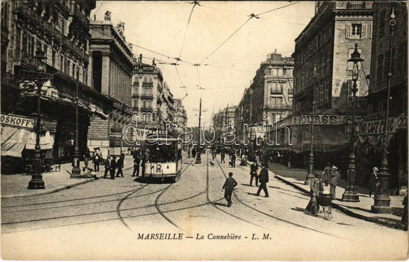 Marseille, La Cannebiere / street view, tram, café (EK) https://www.darabanth.com/de/428-Fernauktion/428.0/Ansichtskarten/Frankreich~1500064/Marseille-La-Cannebiere-street-view-tram-cafe-EK~II2736304