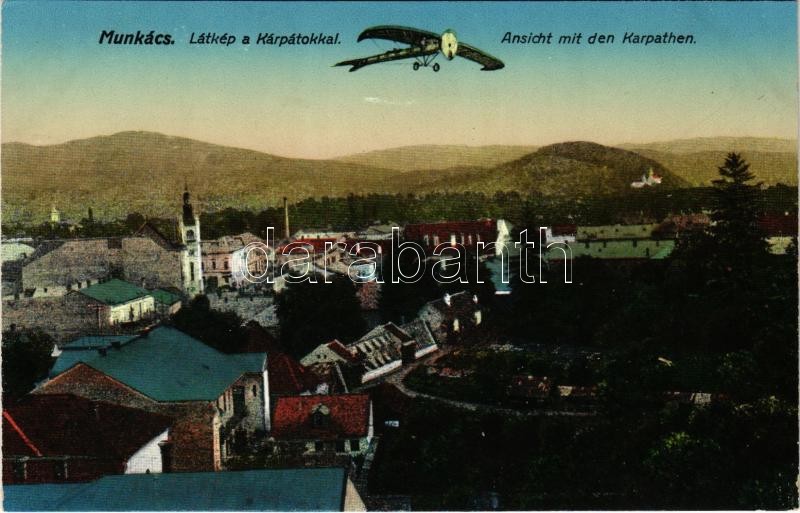 Munkács, Mukacheve, Mukacevo; látkép a Kárpátokkal, repülőgép / genera... https://www.darabanth.com/de/428-Fernauktion/428.0/Ansichtskarten/Karpatenukraine~1500006/Munkacs-Mukacheve-Mukacevo-latkep-a-Karpatokkal-repulogep-general-view-airplane~II2722982