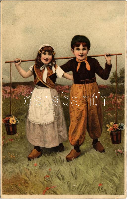 Beschreibung: 1914 Children art postcard, folklore. Meissner & Buch Künstler-Postkarten Serie 1437. "Ein glückliches Paar" litho (EK)
