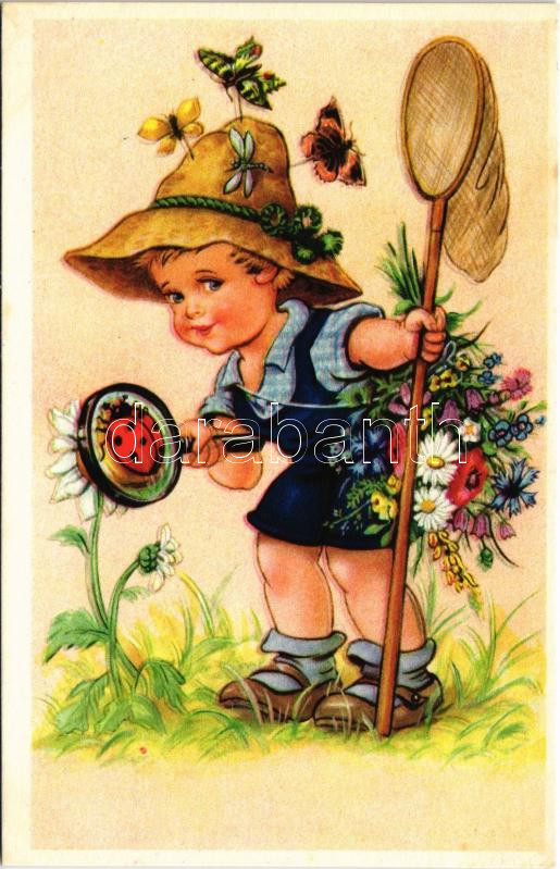Children art postcard, catching butterflies. Coloprint B. https://www.darabanth.com/de/428-Fernauktion/428.0/Ansichtskarten/Kinder~1500022/Children-art-postcard-catching-butterflies-Coloprint-B~II2738201