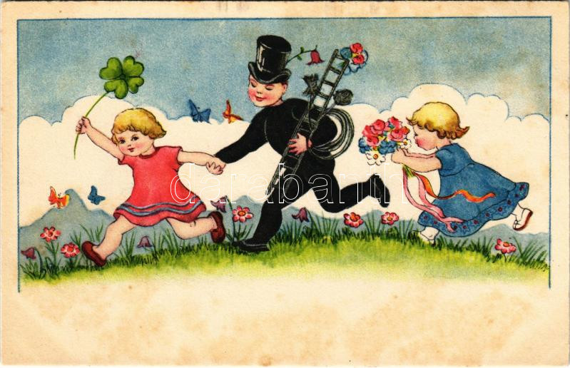 Children art postcard with chimney sweeper and clover. "ERIKA&quo... https://www.darabanth.com/de/428-Fernauktion/428.0/Ansichtskarten/Kinder~1500022/Children-art-postcard-with-chimney-sweeper-and-clover-ERIKA-Nr-3476-fl~II2742960