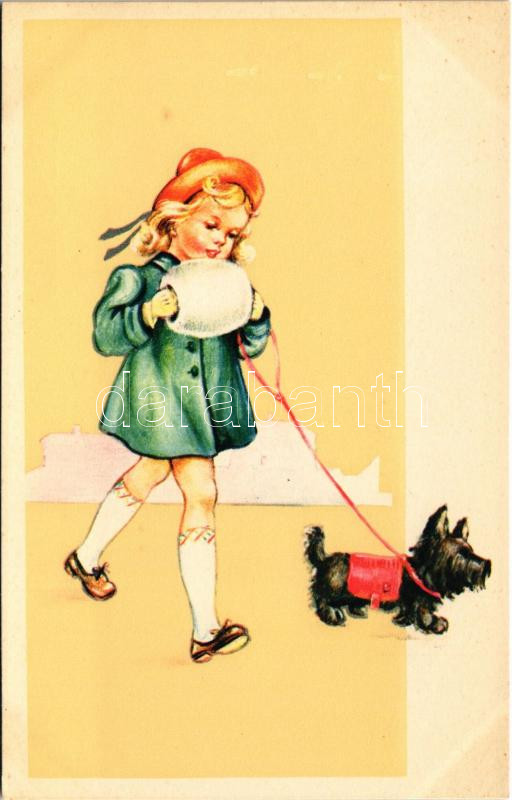Italian children art postcard, girl with dog. Cecami N. 1035. https://www.darabanth.com/de/428-Fernauktion/428.0/Ansichtskarten/Kinder~1500022/Italian-children-art-postcard-girl-with-dog-Cecami-N-1035~II2738183